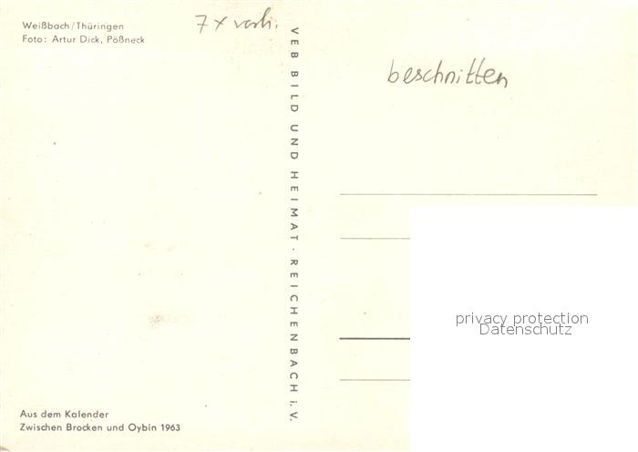 73050599 Weissbach Stadtroda postalisch nicht gelaufen Erhaltung siehe scans [PaolaD17] KatCode: 11110016074108