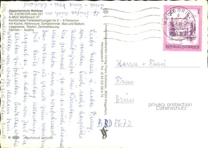 12594818 alte Postkarte Weissbriach Appartements Waldner postalisch gelaufen Erhaltung siehe scans [NatalD47] KatCode: 11390212020320