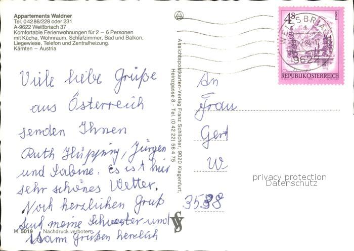72411888 alte Postkarte Weissbriach Appartements Waldner Gaststube Swimmingpool postalisch gelaufen Erhaltung siehe scans KatCode: 11390212020320