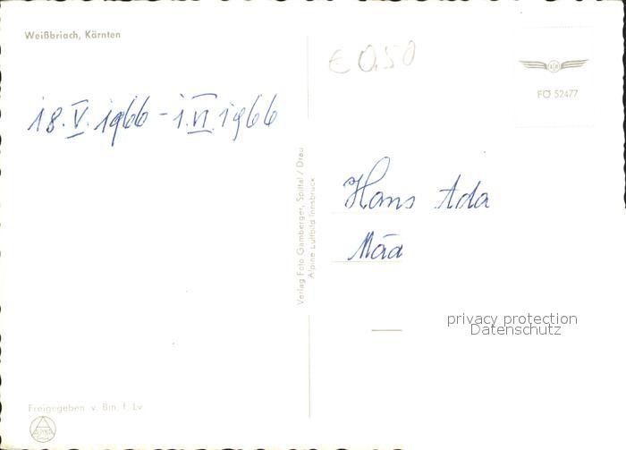 72006705 Weissbriach Fliegeraufnahme postalisch nicht gelaufen Erhaltung siehe scans KatCode: 11390212020320
