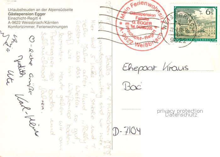 73520844 alte Postkarte Weissbriach Gaestepension Egger postalisch gelaufen Erhaltung siehe scans [FriedD77] KatCode: 11390212020320