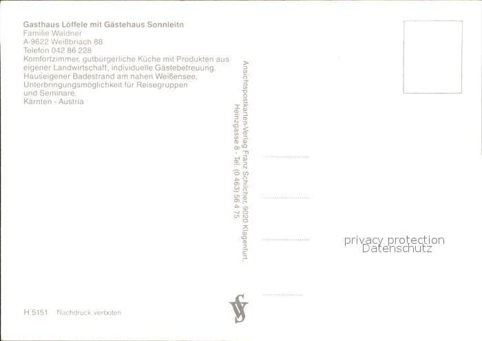 11931853 Weissbriach Gasthaus Loeffele Haus Sonnenschein Seepanorama postalisch nicht gelaufen Erhaltung siehe scans KatCode: 11390212020320