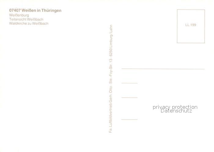 73656222 Weissen Rudolstadt Fliegeraufnahme Weissenburg Weissbach Waldkirche postalisch nicht gelaufen Erhaltung siehe scans [WerneD78] KatCode: 11110009777128