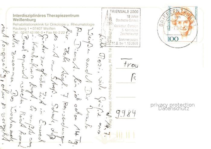 73721055 alte Postkarte Weissen Uhlstaedt-Kirchhasel Interdisziplinaeres Therapiezentrum Reha-Klinik postalisch gelaufen Erhaltung siehe scans [FriedD77] KatCode: 11110016073109