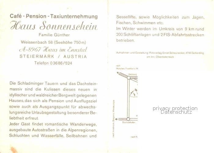 12637394 Weissenbach Enns Cafe Pension Haus Sonnenschein postalisch nicht gelaufen Werbekarte (keine Postkarte) Erhaltung siehe scans [LiesaD40] KatCode: 11390222061248