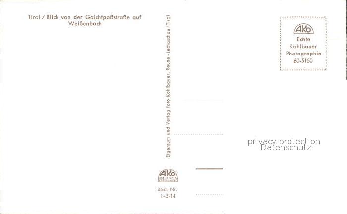 72518670 Weissenbach Lech Gaichtpassstrasse postalisch nicht gelaufen Erhaltung siehe scans KatCode: 11390331070836