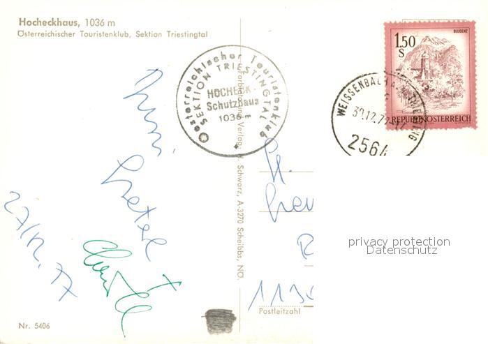 13235686 alte Postkarte Weissenbach Triesting Hocheckhaus Berghuette oesterreichischer Touristenklub postalisch gelaufen Erhaltung siehe scans [FriedD77] KatCode: 11390122030645
