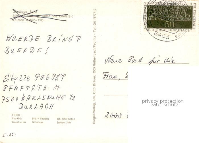 73672040 alte Postkarte Weissenberg Oberpfalz Vituskirchl Blick vom Kirchberg Freibad Neumuehler See Wirtsstuben Gasthaus postalisch gelaufen Erhaltung siehe scans [FriedD77] KatCode: 11110009371119