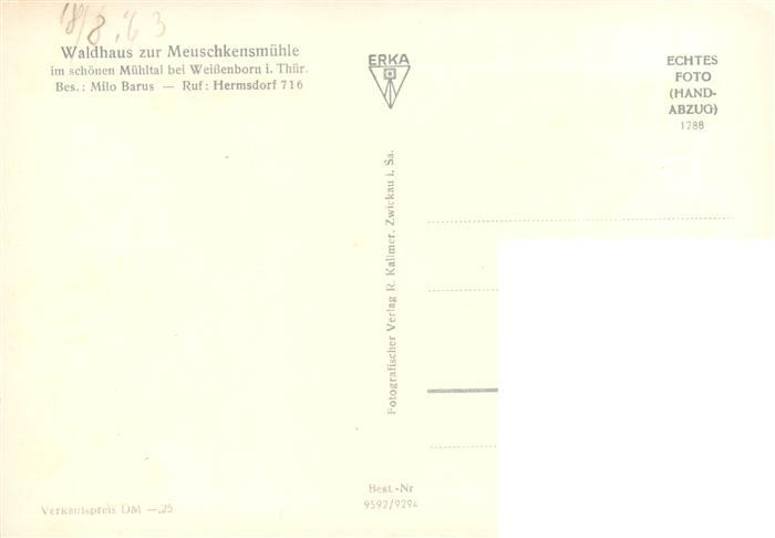 73912229 Weissenborn Bad Klosterlausnitz Thueringen Waldhaus zur Meuschkensmuehle Details postalisch nicht gelaufen Erhaltung siehe scans [WerneD78] Wern Katcode 11110016074003