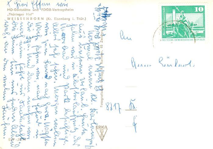 73895495 Weissenborn Thueringen Bad Klosterlausnitz Panorama HOG und FDGB Vertragsheim Thueringer Hof Gastraum postalisch gelaufen Erhaltung siehe scans [WerneD78] alte Postkarte Wern Katcode 11110016074003