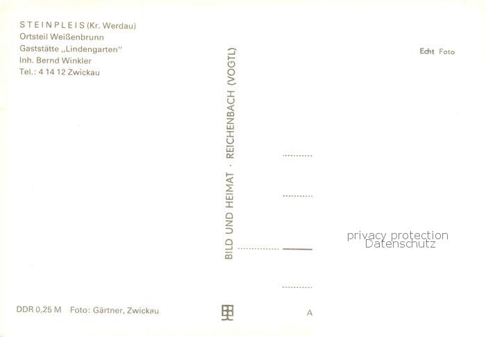 74052523 Weissenbrunn Steinpleis Gaststaette Lindengarten Restaurant postalisch nicht gelaufen Erhaltung siehe scans [FriedD77] KatCode: 11110014193490