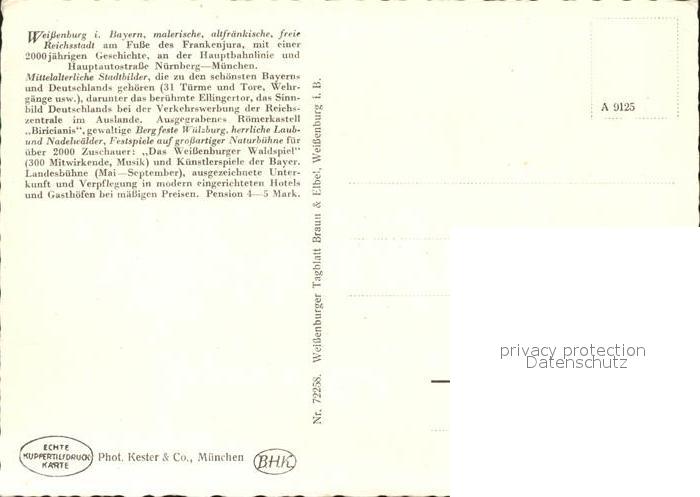 72149396 Weissenburg Bayern Alte Stadtmauer Schiessgraben postalisch nicht gelaufen Erhaltung siehe scans KatCode: 11110009577177