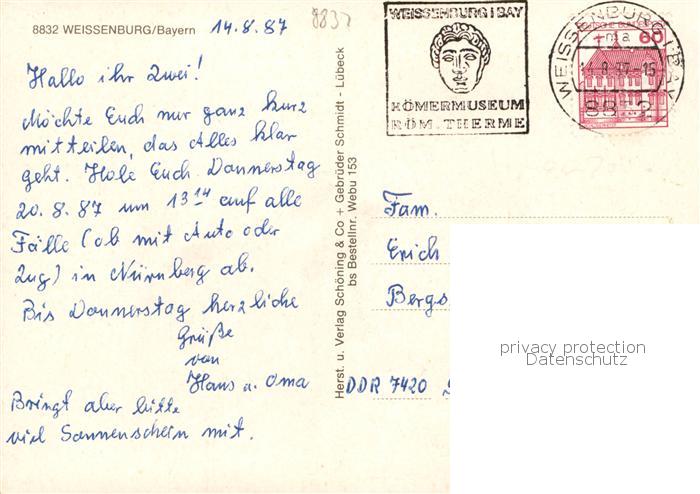 73834526 alte Postkarte Weissenburg Bayern Brunnen postalisch gelaufen Erhaltung siehe scans [WerneD78] KatCode: 11110009577177