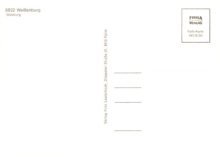 73942044 Weissenburg Bayern Die Wuelzburg Fliegeraufnahme postalisch nicht gelaufen Erhaltung siehe scans [FriedD77] KatCode: 11110009577177