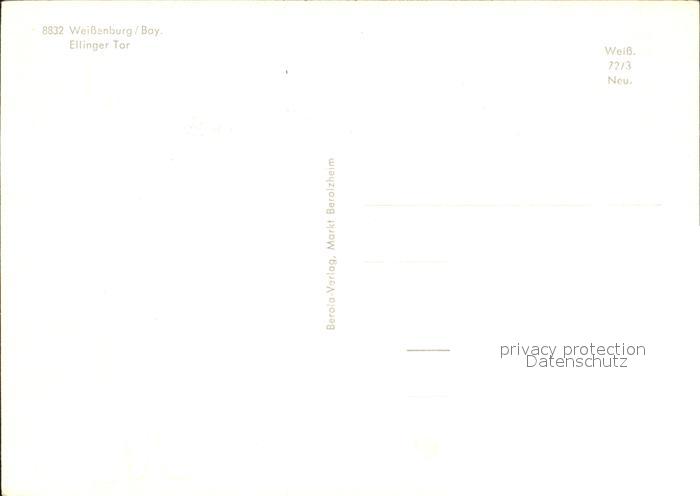 72921284 Weissenburg Bayern Ellinger Tor postalisch nicht gelaufen Erhaltung siehe scans [LiesaD40] KatCode: 11110009577177