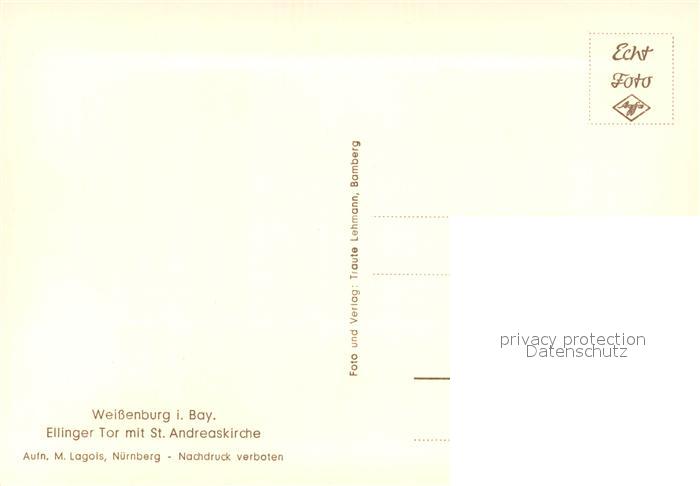73622831 Weissenburg Bayern Ellinger Tor mit St Andreaskirche postalisch nicht gelaufen Erhaltung siehe scans [WerneD78] KatCode: 11110009577177