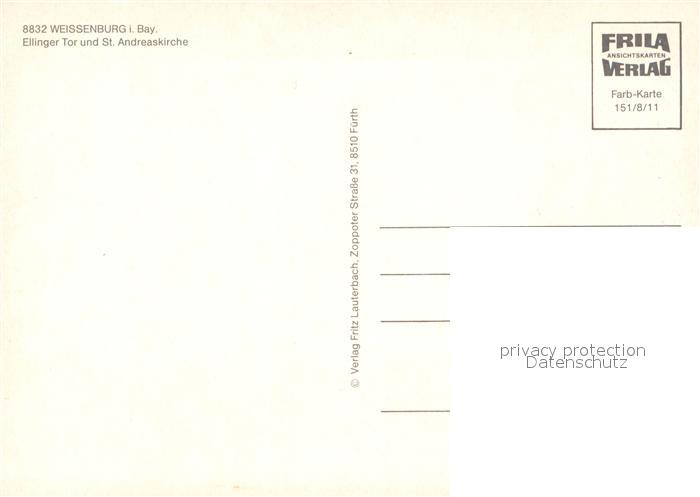 73227254 Weissenburg Bayern Ellinger-Tor St.-Andreaskirche postalisch nicht gelaufen Erhaltung siehe scans [LiesaD40] KatCode: 11110009577177