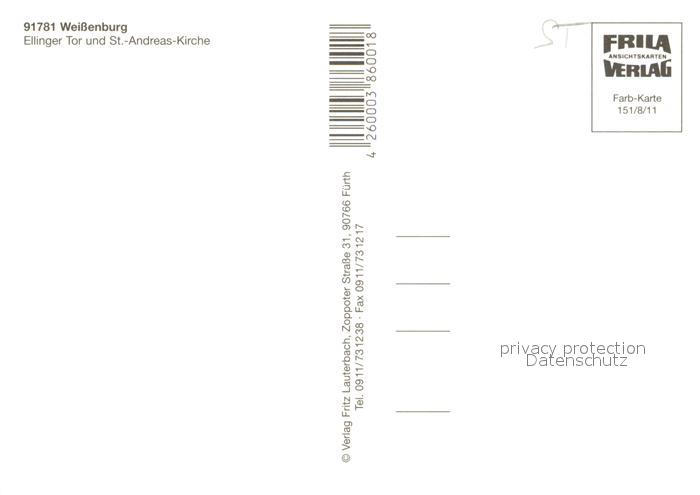 73271839 Weissenburg Bayern Ellinger Tor und St Andreas Kirche postalisch nicht gelaufen Erhaltung siehe scans [WerneD78] KatCode: 11110009577177