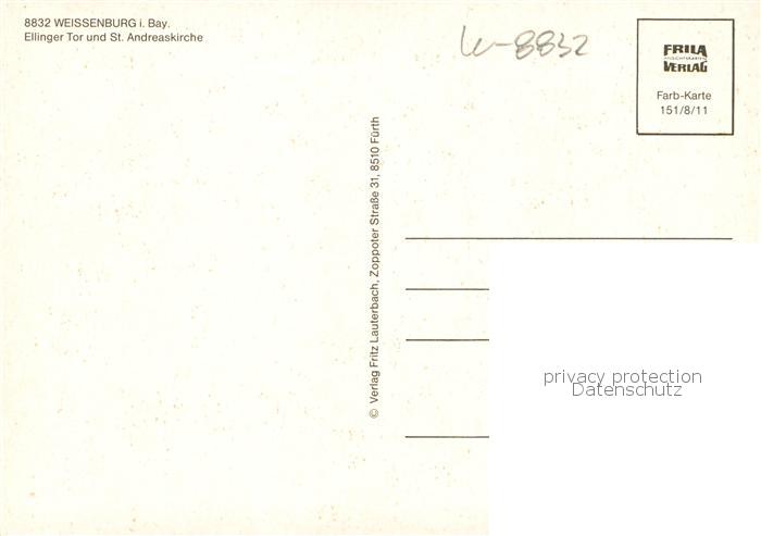 73834532 Weissenburg Bayern Ellinger Tor und St Andreaskirche postalisch nicht gelaufen Erhaltung siehe scans [WerneD78] KatCode: 11110009577177