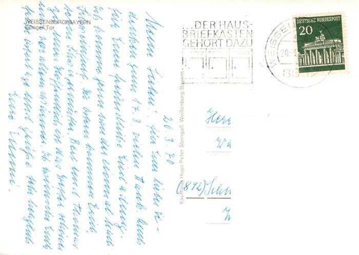 73885214 alte Postkarte Weissenburg Bayern Ellinger Tor postalisch gelaufen Erhaltung siehe scans [FriedD77] KatCode: 11110009577177