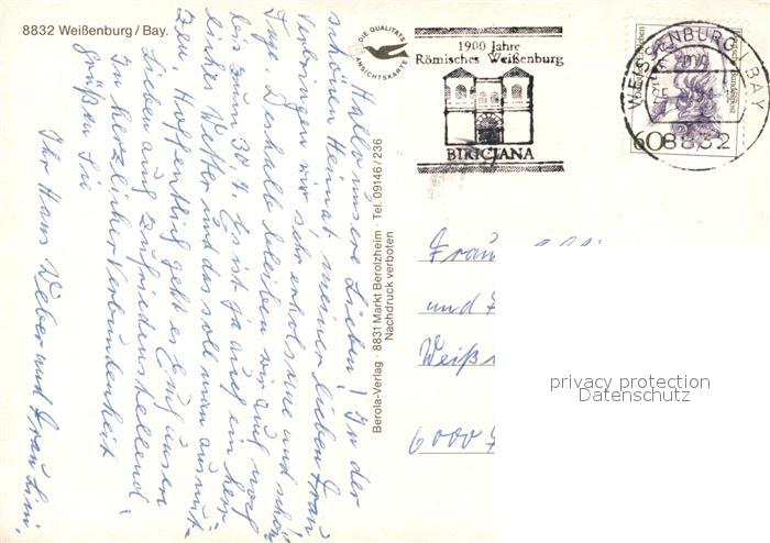 73271835 alte Postkarte Weissenburg Bayern Gasse Stattor Brunnen Schloss Tuerme postalisch gelaufen Erhaltung siehe scans [WerneD78] KatCode: 11110009577177