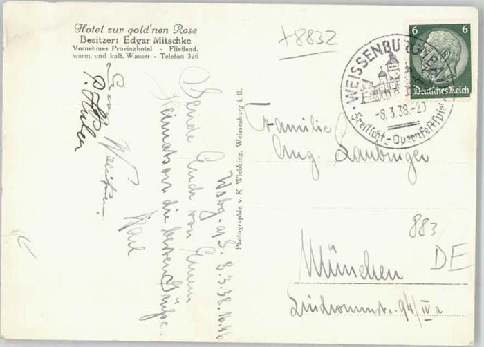 40243105 Weissenburg Bayern Hotel zur goldnen Rose Cafe Restaurant postalisch gelaufen Alte Ansichtskarte Postkarte alte Postkarte Katcode 11110009577177