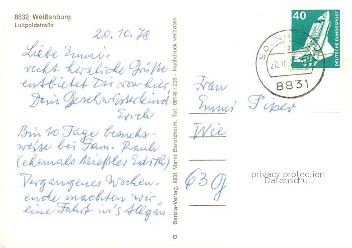 73226985 alte Postkarte Weissenburg Bayern Luitpoldstrasse Brunnen postalisch gelaufen Erhaltung siehe scans [FriedD77] KatCode: 11110009577177