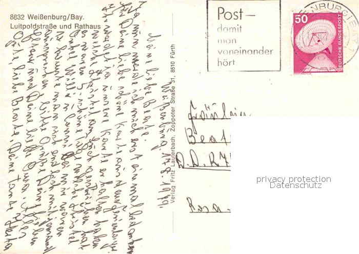 72869424 alte Postkarte Weissenburg Bayern Luitpoldstrasse Rathaus postalisch gelaufen Erhaltung siehe scans [NatalD47] KatCode: 11110009577177