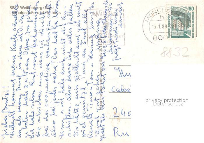 73868545 alte Postkarte Weissenburg Bayern Luitpoldstrasse und Rathaus postalisch gelaufen Erhaltung siehe scans [WerneD78] KatCode: 11110009577177
