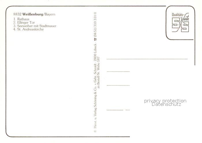 73181475 Weissenburg Bayern Rathaus Ellinger Tor Seeweiher mit Stadtmauer St Andreaskirche postalisch nicht gelaufen Erhaltung siehe scans [WerneD78] KatCode: 11110009577177