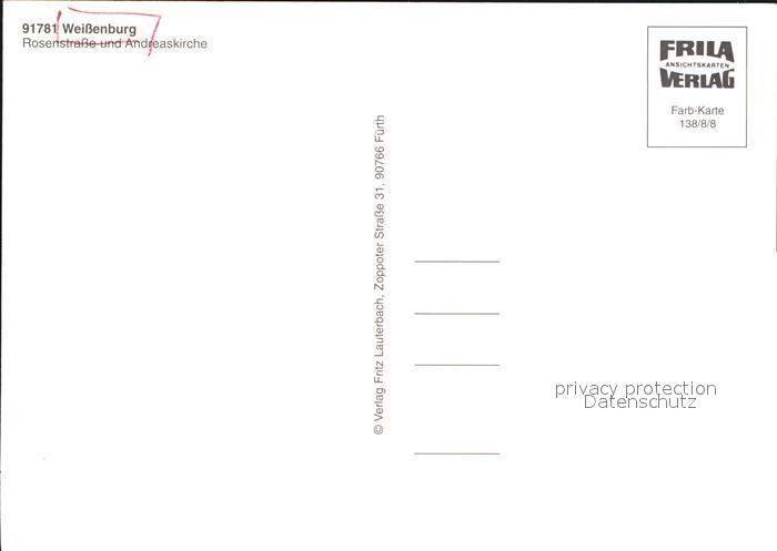 72567573 Weissenburg Bayern Rosenstrasse mit Andreaskirche postalisch nicht gelaufen Erhaltung siehe scans [LiesaD40] KatCode: 11110009577177