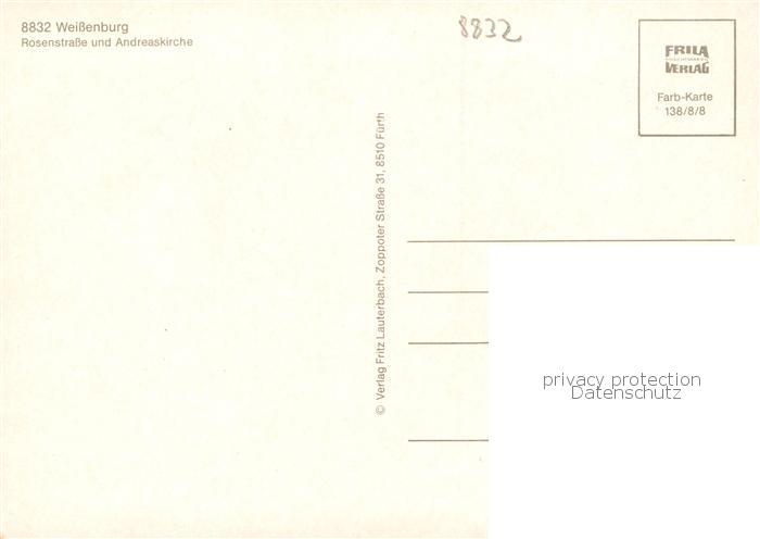 73834528 Weissenburg Bayern Rosenstrasse und Andreaskirche postalisch nicht gelaufen Erhaltung siehe scans [WerneD78] KatCode: 11110009577177