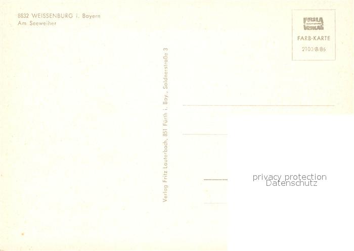 73171912 Weissenburg Bayern Schwaene im Seeweiher postalisch nicht gelaufen Erhaltung siehe scans [FriedD77] KatCode: 11110009577177