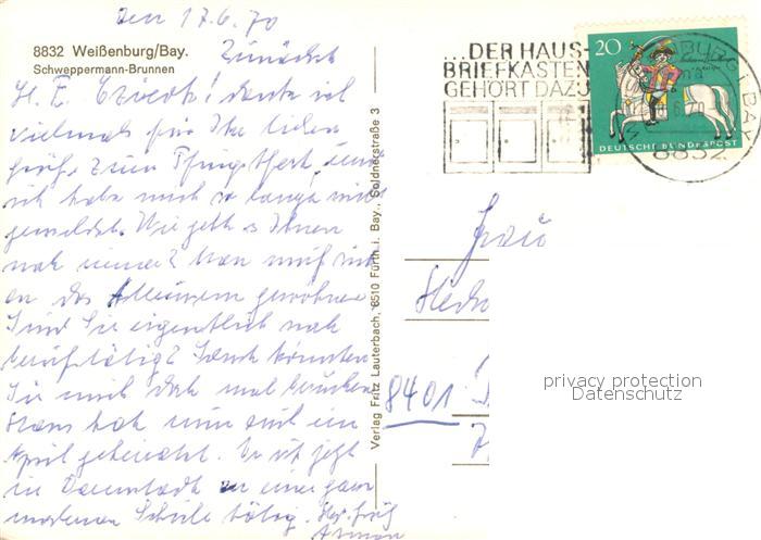 73745625 alte Postkarte Weissenburg Bayern Schweppermann Brunnen postalisch gelaufen Erhaltung siehe scans [WerneD78] KatCode: 11110009577177