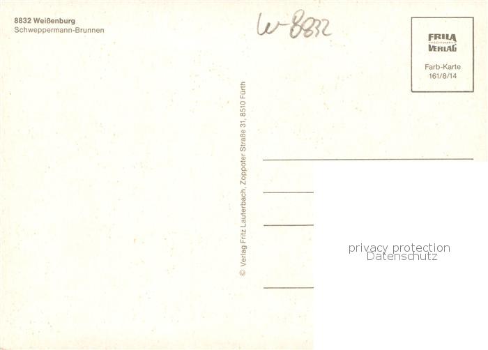 73834533 Weissenburg Bayern Schweppermann Brunnen postalisch nicht gelaufen Erhaltung siehe scans [WerneD78] KatCode: 11110009577177