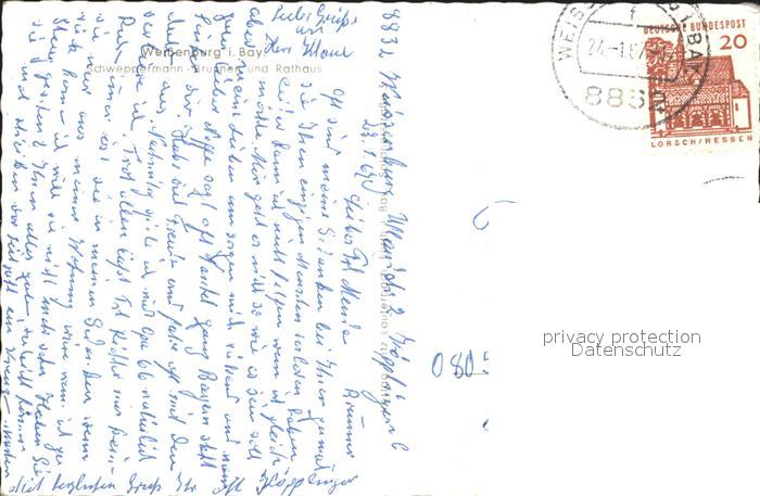 72364817 alte Postkarte Weissenburg Bayern Schweppermannbrunnen Rathaus postalisch gelaufen Erhaltung siehe scans KatCode: 11110009577177