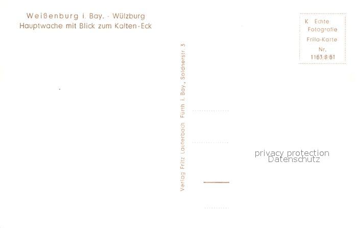 73624652 Weissenburg Bayern W?lzburg Hauptwache mit Blick zum Kalten Eck postalisch nicht gelaufen Erhaltung siehe scans [LiesaD40] KatCode: 11110009577177