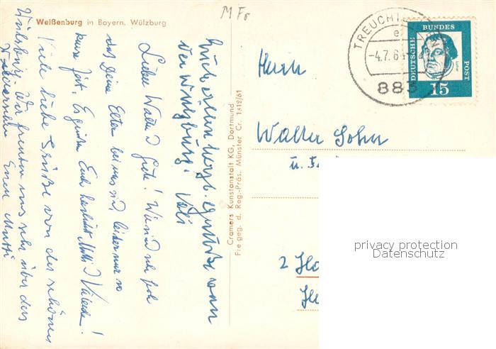 73754488 alte Postkarte Weissenburg Bayern Wuelzburg postalisch gelaufen Fliegeraufnahme Erhaltung siehe scans [FriedD77] KatCode: 11110009577177