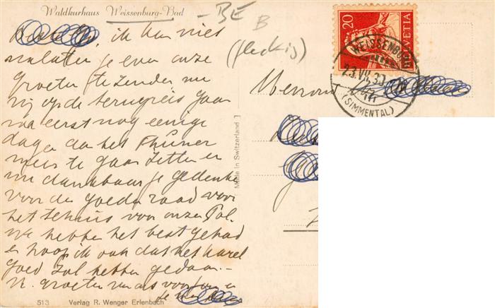 13921463 alte Postkarte Weissenburg Simmental BE Waldkurhaus Weissenburg postalisch gelaufen Erhaltung siehe scans [FriedD77] KatCode: 11470060205532