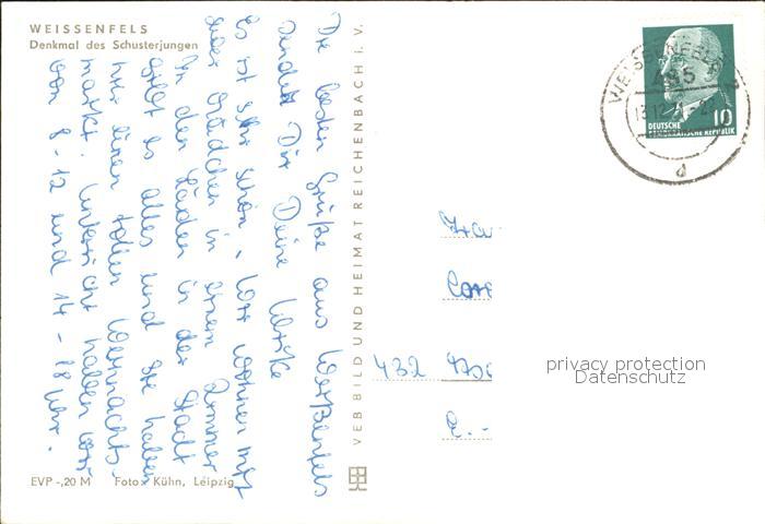 72355943 alte Postkarte Weissenfels Saale Denkmal des Schusterjungen postalisch gelaufen Erhaltung siehe scans KatCode: 11110015084550