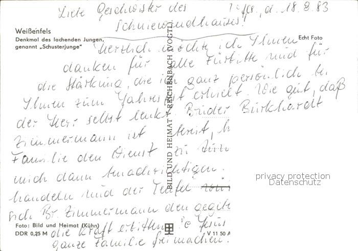 72134894 Weissenfels Saale Denkmal Schusterjunge postalisch nicht gelaufen Erhaltung siehe scans KatCode: 11110015084550