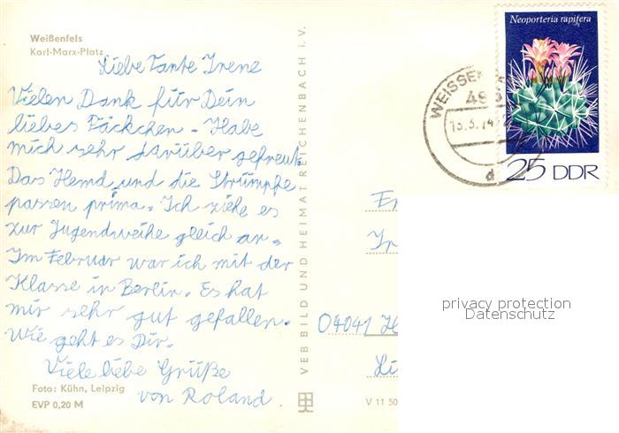72920433 alte Postkarte Weissenfels Saale Karl Marx Platz Brunnen postalisch gelaufen Erhaltung siehe scans [LiesaD40] KatCode: 11110015084550
