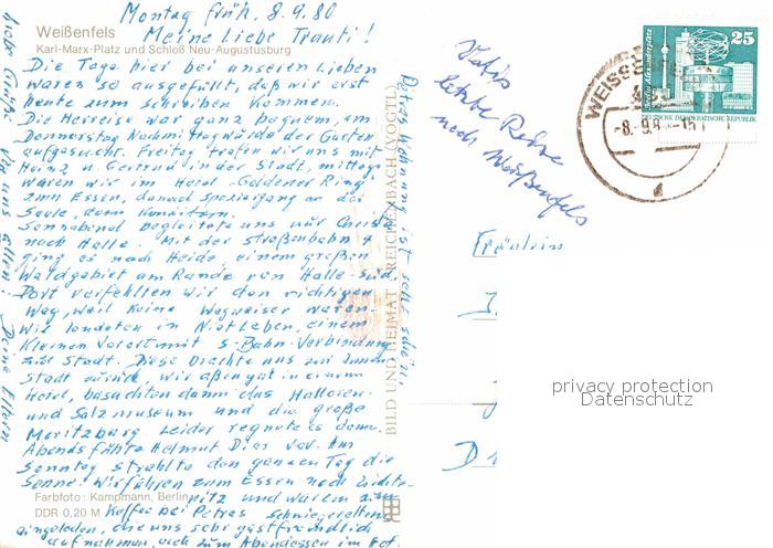 72753976 alte Postkarte Weissenfels Saale Karl Marx Platz Schloss Neu Augustusburg postalisch gelaufen Erhaltung siehe scans [FriedD77] KatCode: 11110015084550