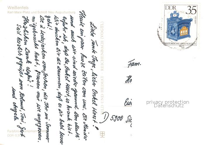 73165483 alte Postkarte Weissenfels Saale Karl-Marx-Platz Schloss Neu-Augustusburg postalisch gelaufen Erhaltung siehe scans [NatalD47] KatCode: 11110015084550
