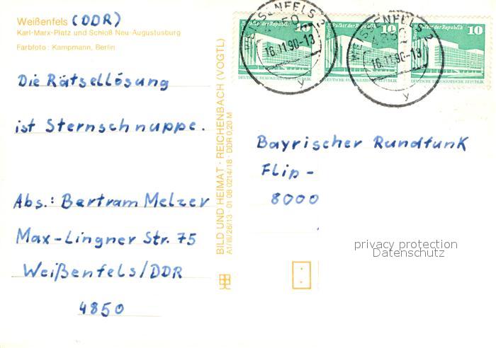73654886 alte Postkarte Weissenfels Saale Karl Marx Platz und Schloss Neu Augustusburg postalisch gelaufen Erhaltung siehe scans [WerneD78] KatCode: 11110015084550