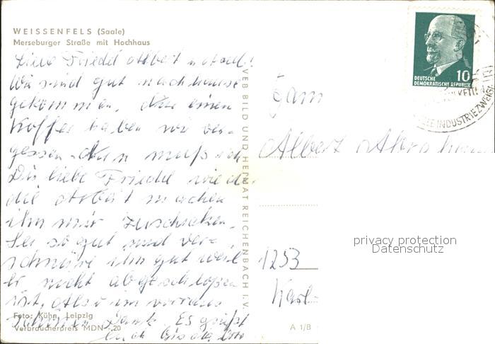 72077255 alte Postkarte Weissenfels Saale Merseburger Strasse Hochhaus postalisch gelaufen Erhaltung siehe scans KatCode: 11110015084550
