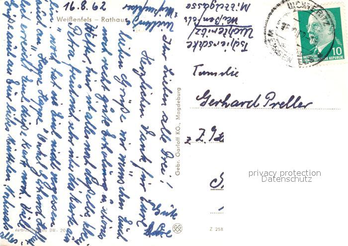 72964493 alte Postkarte Weissenfels Saale Rathaus postalisch gelaufen Erhaltung siehe scans [FriedD77] KatCode: 11110015084550