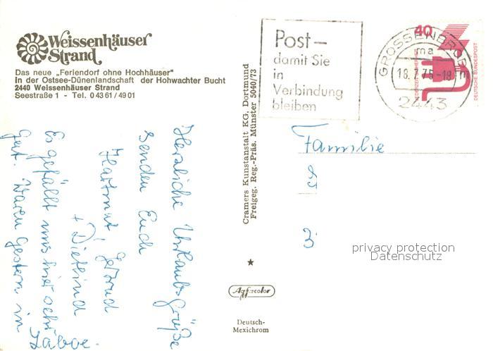 73668484 alte Postkarte Weissenhaeuser Strand Das neue Feriendorf ohne Hochhaeuser in der Hohwachter Bucht Fliegeraufnahme postalisch gelaufen Erhaltung siehe scans [WerneD78] KatCode: 11110001055043