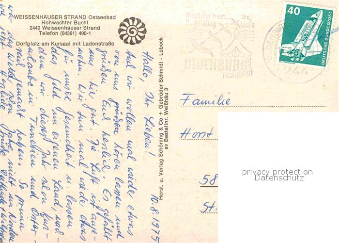 72896669 alte Postkarte Weissenhaeuser Strand Dorfplatz Kursaal Ladenstrasse postalisch gelaufen Erhaltung siehe scans [AndreD76] KatCode: 11110001055043