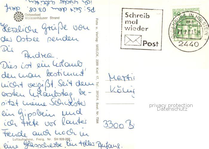 73764338 alte Postkarte Weissenhaeuser Strand Fliegeraufnahme postalisch gelaufen Erhaltung siehe scans [FriedD77] KatCode: 11110001055043